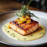 Have you ever tasted a dish that transports you to a sun-drenched terrace by the sea? Grilled Salmon with Tarragon Mustard Cream Sauce and Creamy Polenta does just that. The succulent salmon, expertly grilled to perfection, pairs beautifully with a creamy sauce infused with vibrant tarragon and zesty mustard. Each bite offers a symphony of flavors and textures that will leave your taste buds dancing.